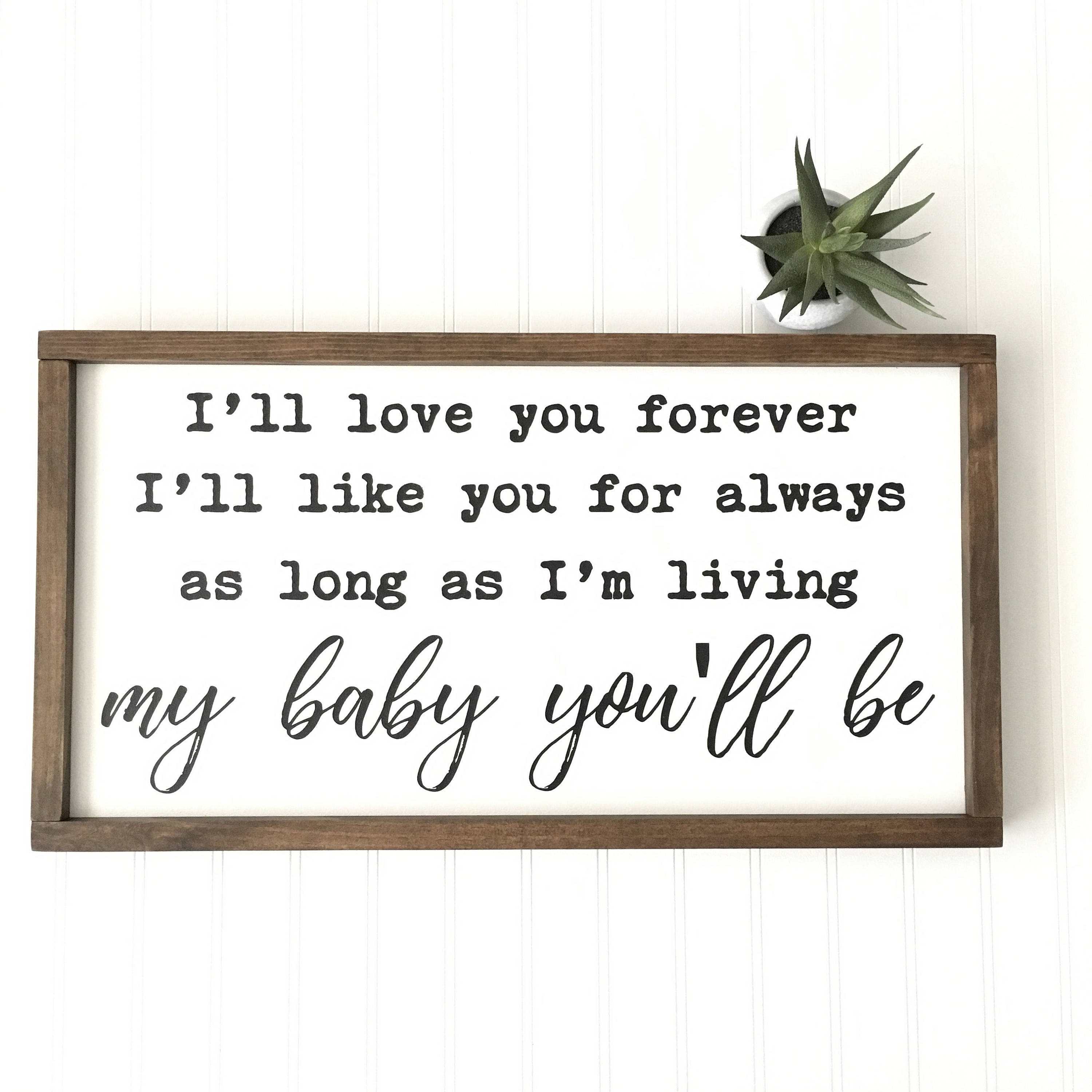 ‘i'll love you forever,i'll like you for always, as long as i'm living, my baby you'll be.’ I’ll like you for always. Check out our my baby you'll be selection for the very best in unique or custom, handmade pieces from our signs shops. Handcrafted with natural wood making each frame its own masterpiece with unique color tones and variations. Resources > quotes > baby > quote i'll love you forever, i'll like you for always, as long as i'm living my baby you'll be. It is simple things like the content smile. Your tiny little newborn face i couldn’t have loved more and though your face was new to me You are his momma and he. We offer over 12 stock colors with 50 additional colors available upon request.