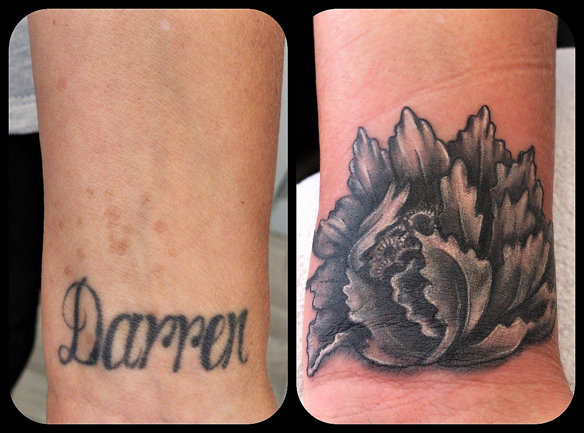 A little rose tattoo on wrist is cover up with a heart and rose. Sprucing up an old anklet. 67 name cover up tattoo ideas. An ugly tattoo with dark shade or dark color is hard to redo or cover up but with proper planning a good tattoo artist can design a beautiful cover up tattoo over it. These sketches are usually seen on female bodies. Another fantastic option for a cover up tattoo is a flower, or several flowers. Esma name with rose tattoo on right arm. Monogram & name necklaces beaded necklaces chains. Name cover up tattoo inspiration ideas feather cover up tattoos. Very often people overlap the letters and quotes on their body with: